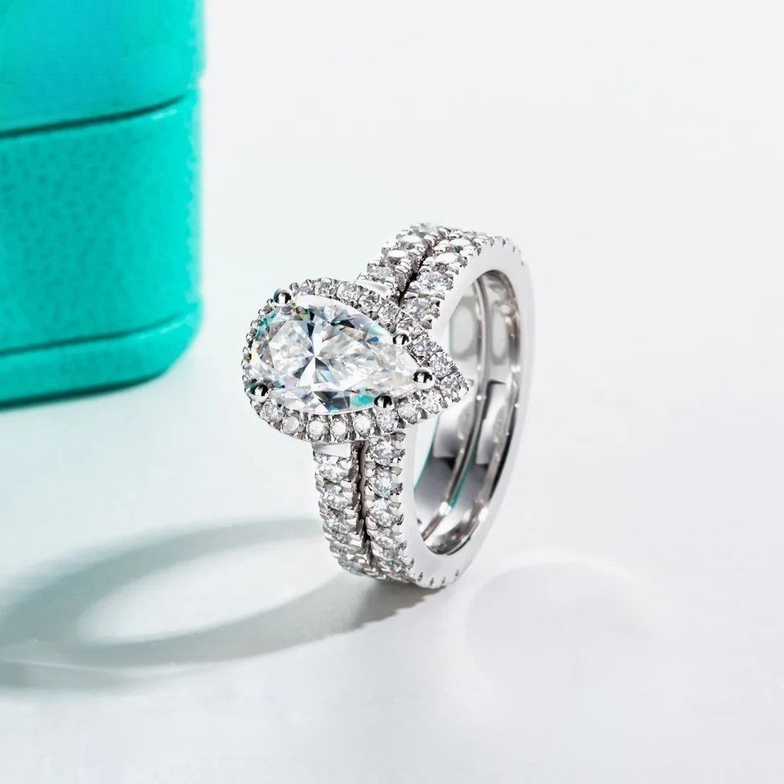 Celeste 3.70 Carats Solid Silver Platinum Plated + Wedding Band
